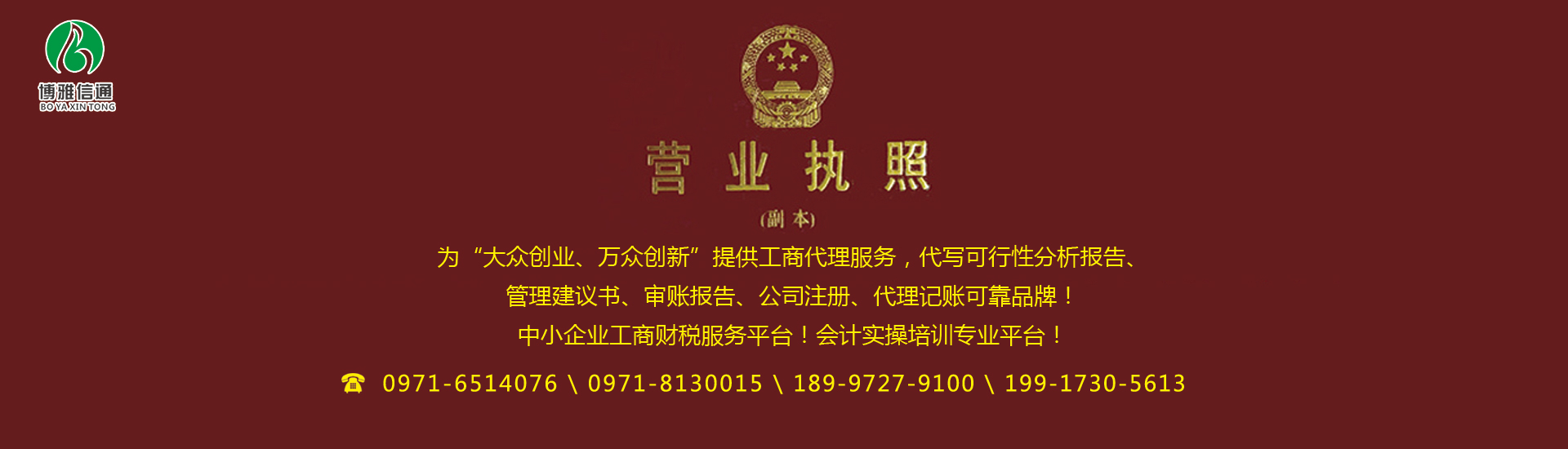 北京博雅信通會計服務(wù)有限公司西寧分公司為各中小企業(yè)提供各種專業(yè)工商財稅會計服務(wù)。包括公司設(shè)立籌劃、公司注冊、執(zhí)照變更、代辦注銷、代理記賬報稅、亂賬整理、會計實操培訓、會計職稱培訓(會計取證培訓)等一站式服務(wù)體系,誠信、專業(yè)、高效、省心! 公司簡介: 北京博雅信通會計服務(wù)有限公司西寧分公司 成立于2003年,積累了幾十個行業(yè)工商財稅會計服務(wù)經(jīng)驗,主要提供公司注冊、執(zhí)照變更、企業(yè)注銷、工商年報、代理記賬、納稅申報、會計培訓、財稅顧問等一系列服務(wù)。全程工商財稅老板們甩手我們代理,并且用足用好工商財稅優(yōu)惠政策,讓企業(yè)老板省心、省時、省事兒!節(jié)約會計核算和納稅成本,解放您的寶貴時間抓好企業(yè)經(jīng)營,做您的...